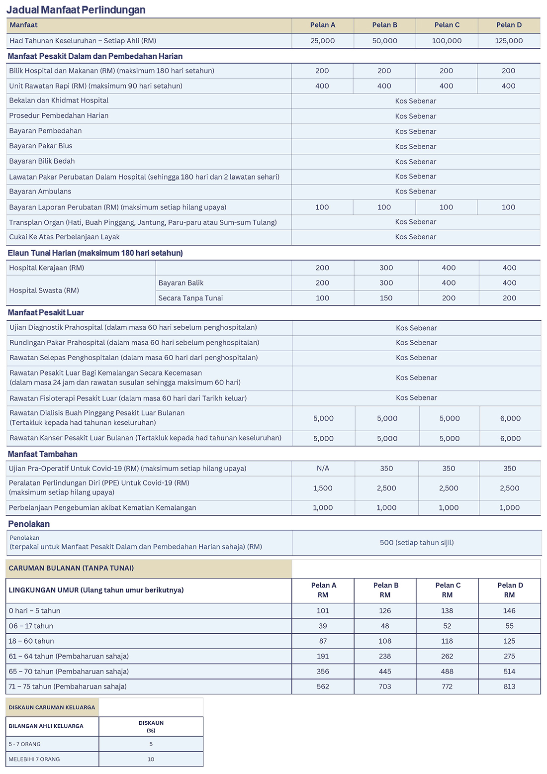 Perlindungan yang tinggi RM 125,000 setahun bagi setiap individu.
